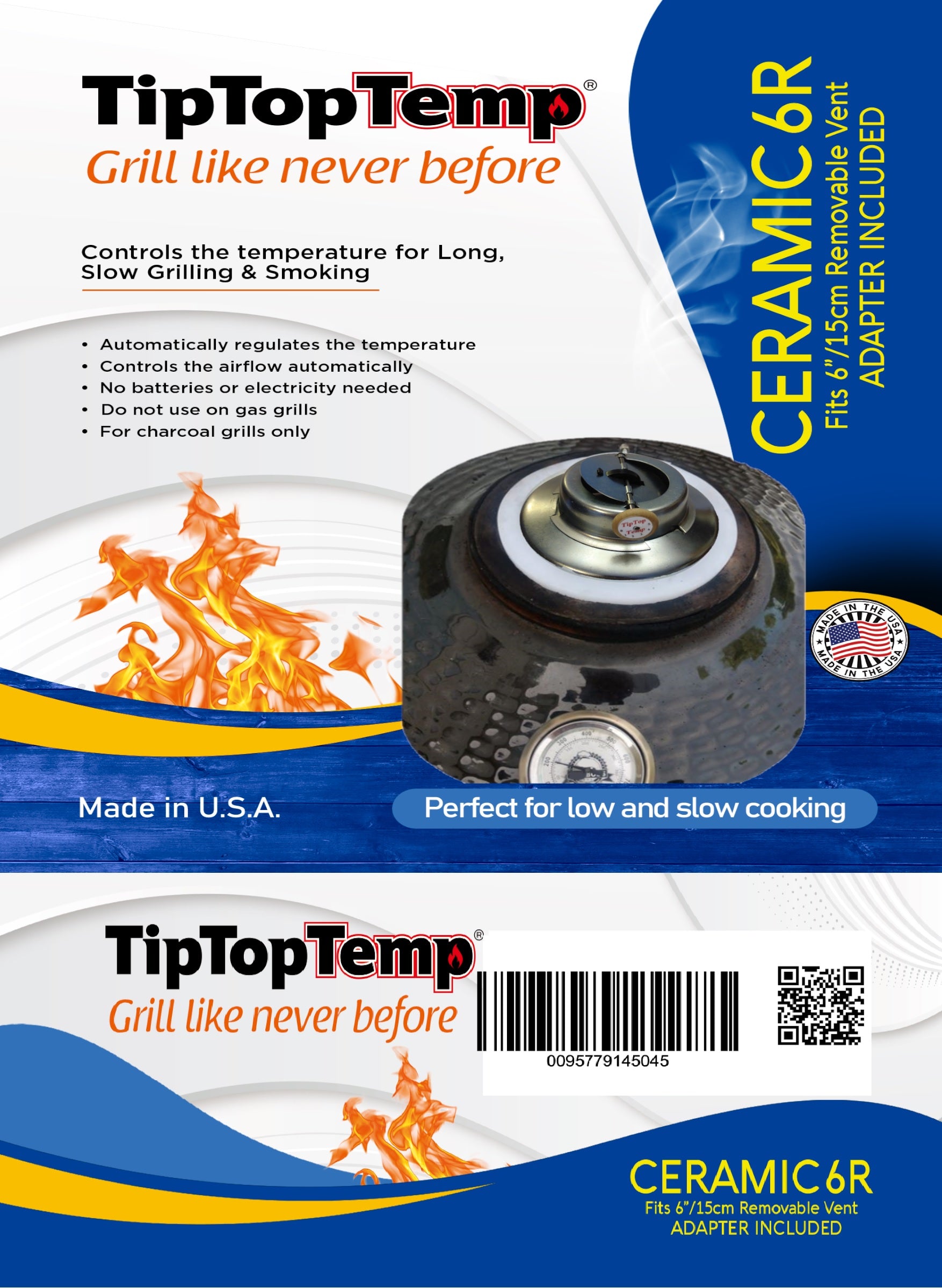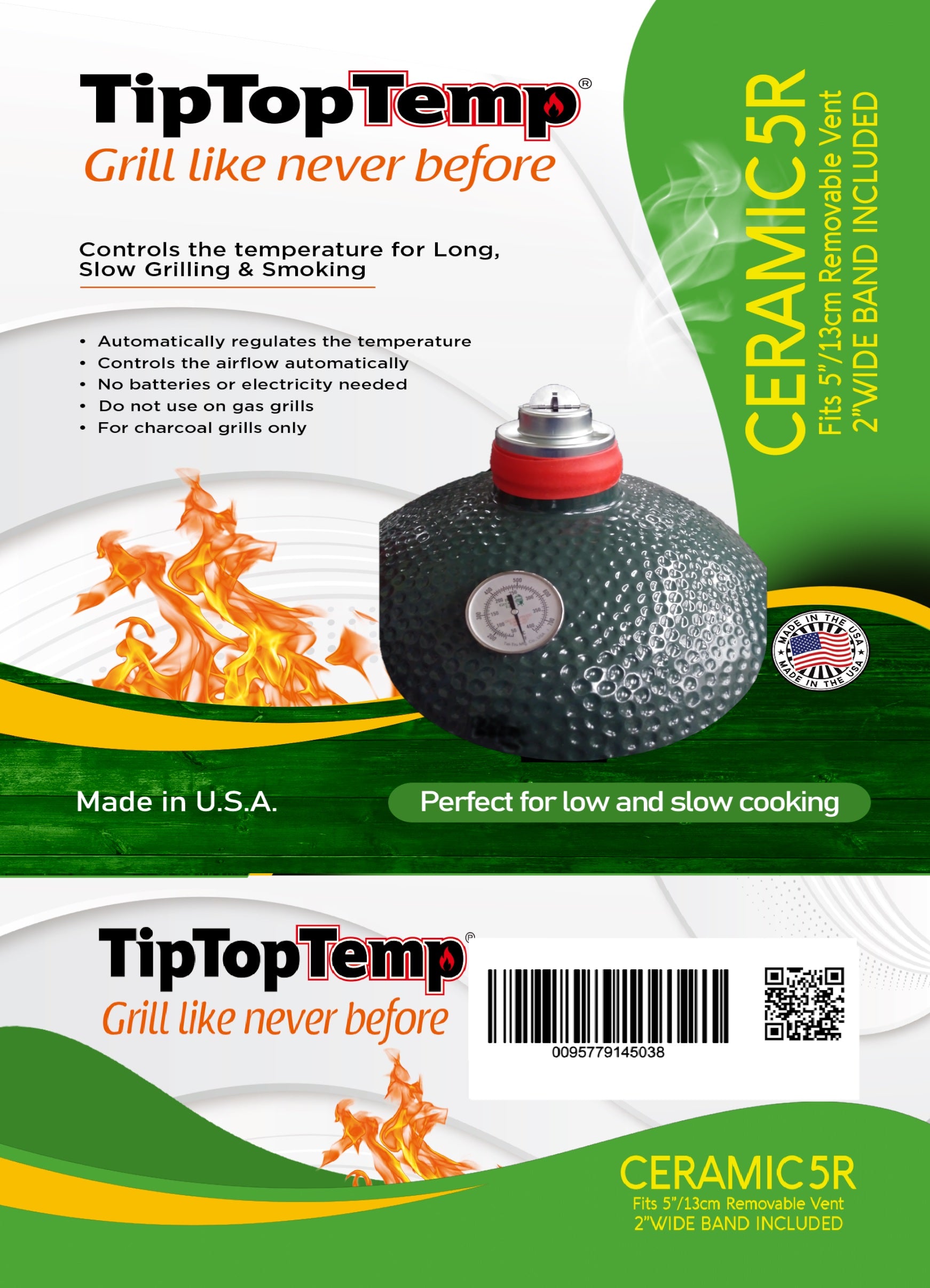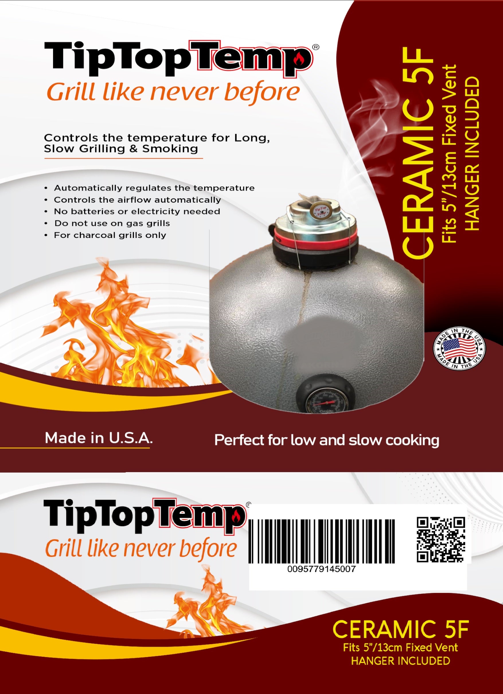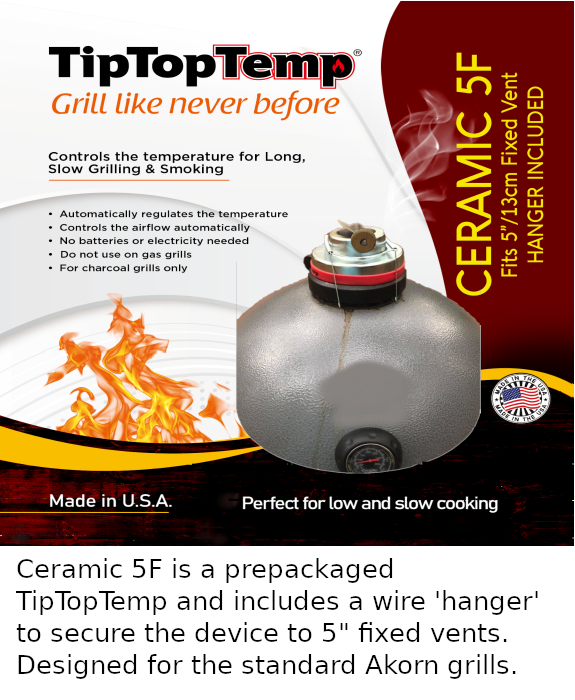 Ceramic 5F is a prepackaged TipTopTemp and includes a wire 'hanger' to secure the device to 5" fixed vents. Designed for the standard Akorn grills.