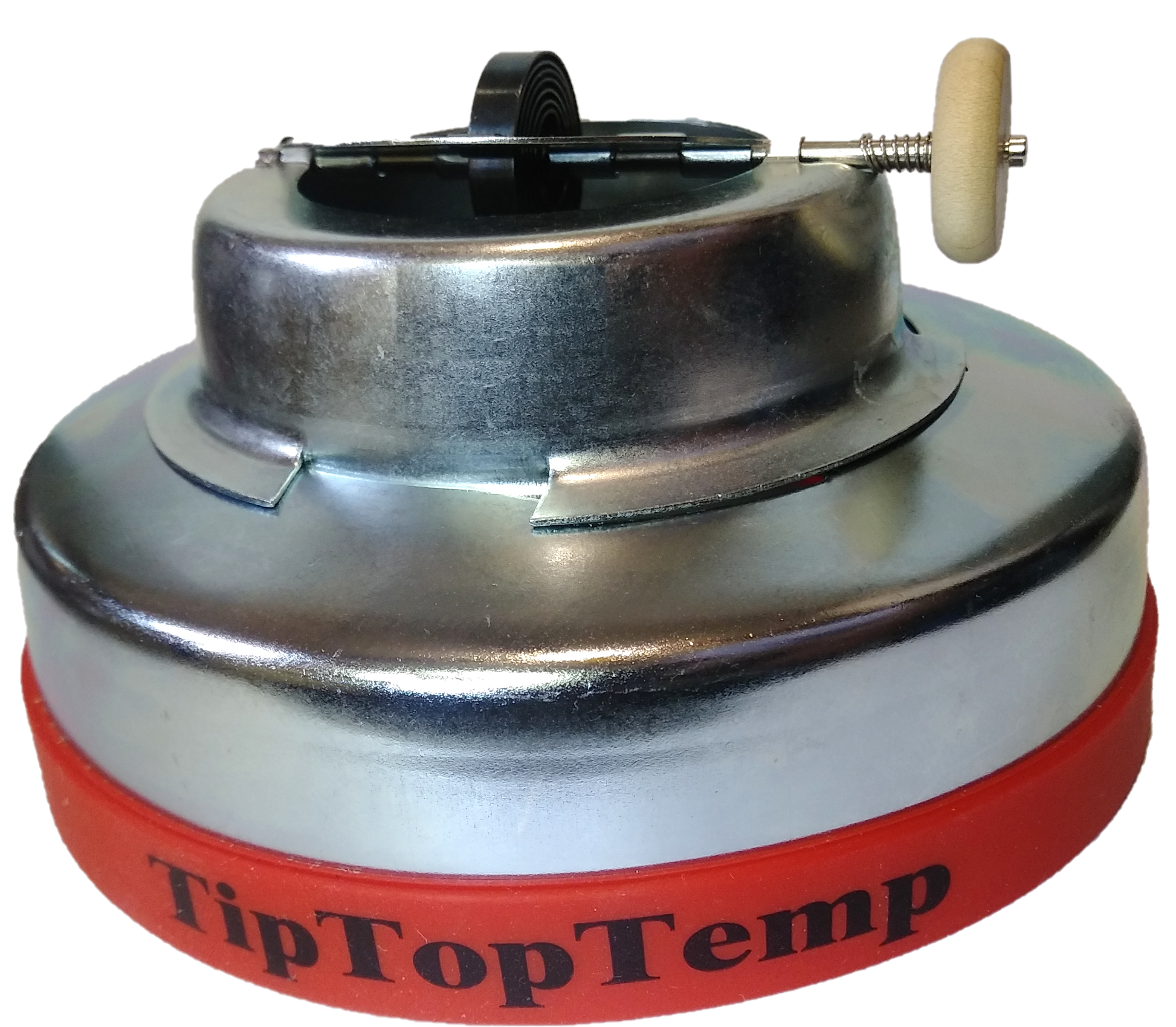 The USA made T3 is made of heavy gauge plated steel and has a hardwood knob. The knob can be personalized with a graduated decal or favorite temperature marked by the customer. The T3 can be used as a single 3"ID or 5"OD assembled unit with a twist, locking the two pieces together. The only difference between the packages is the included accessory. Each package has the same TipTopTemp device, 5/8" silicone band, Hardwood knob, knob decals and set of Weber clips. The Weber clips will not be needed in all applications but are included in the event of using a kettle grill. The fragile plastic knob was obsoleted and is NOT included.